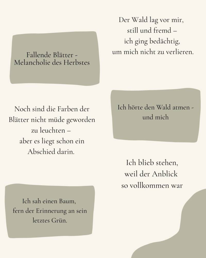 „Geh heute einmal ohne Ziel an den Waldrand. Nimm dir nichts vor, außer einen einzigen Satz zu finden, der dort auf dich wartet. Es muss kein Gedicht sein – nur ein Bruchstück von dem, was du siehst oder fühlst. Was flüstert dir der Wald heute zu?“